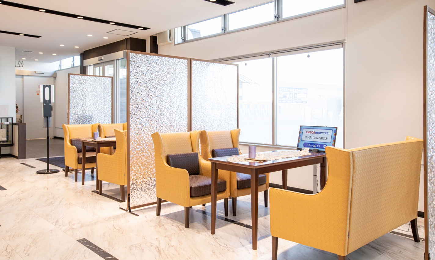 大森石油本社1階に新たにオープンした『Luxe Station(リュクステーション)』は、お客様に広々とした空間で安心安全に、そして快適に過ごしていただくために誕生した贅沢なスペースです。