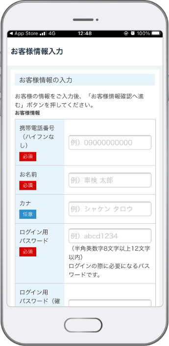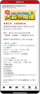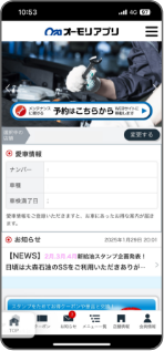 手洗い洗車、タイヤ交換など、アプリトップ画面の「予約はこちらから」をタップして予約が可能です。