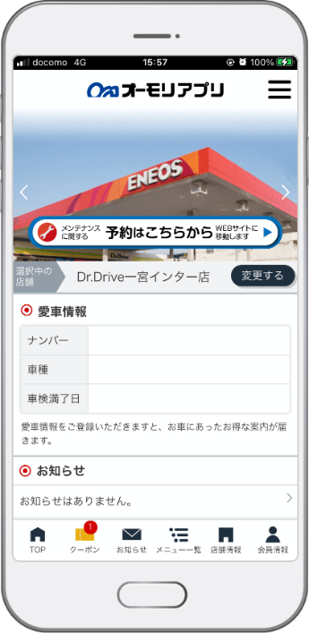 燃料割引クーポン、オイル交換優待クーポンなど、お得なクーポンを配信します。